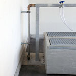 Für die Frischwasserversorgung ist ein Waschbügel aus verzinktem Stahlprofil im Lieferumfang enthalten. Je nach Ausführung wird dieser mit 4 bis 16 Wasserhahnanschlüssen (½") geliefert. Zusätzlich verfügt die Anlage über einen Schlauchanschluss mit Verschraubung (¾", LW 16) sowie eine feuerverzinkte 1"-Anschlussmuffe für den Frischwasserzulauf – ebenfalls frei wählbar für links- oder rechtsseitige Installation.