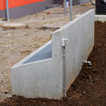 Diese Schuhreinigungsanlage besteht aus glatt gegossenem Beton mit gefassten Kanten, was ihr eine besonders robuste und langlebige Bauweise verleiht. Um das Spritzen von Schmutzwasser zu minimieren, ist eine integrierte Rückwand aus Beton eingebaut. Dadurch lässt sich die Anlage problemlos direkt an eine Fassade stellen, ohne dass diese durch Wasser oder Schmutz beschädigt wird. Die Gitterroste aus verzinktem Stahl sind ebenfalls besonders widerstandsfähig und lassen sich zur Reinigung einfach entnehmen.