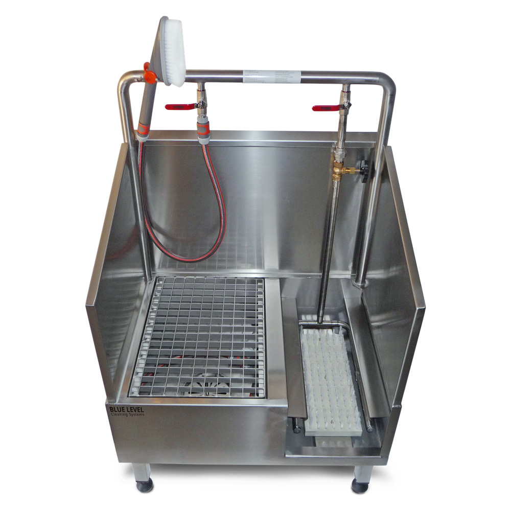 Die Arbeitsschuhe Reiniger Waschanlage bietet bis zu 3 Reinigungsplätze für die spritzfreie und gründliche Reinigung von Arbeitsschuhen. Der von Blue Level