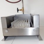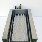 Für schwer zugängliche Stellen ist eine wasserführende Handbürste im Lieferumfang enthalten. Das verwendete Wasser wird in der integrierten Edelstahlwanne gesammelt und über einen rückseitigen Ablauf zuverlässig abgeführt.