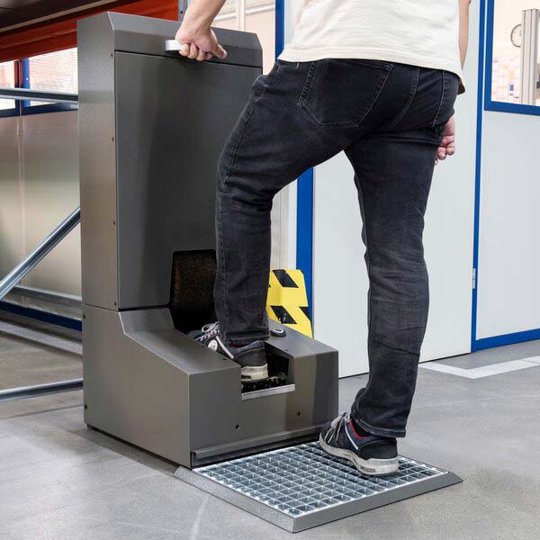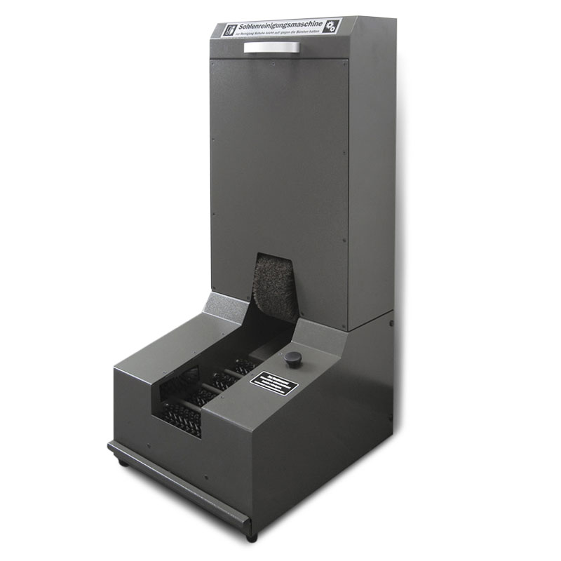 Unsere Sohlenreinigungsmaschine TROCKEN 100 ist ein bewährtes Modell, welches bei unzähligen renommierten Kunden aus Industrie, Elektrotechnik, Lebensmittel, Pharma, Gesundheitswesen und Handwerk tagtäglich im Einsatz steht. Mit diesem Sohlenreinigungsapparat können Ihre Mitarbeiter schonend die Schuhsohlen, Sohlenränder und das Oberleder ihrer Arbeitsschuhe trocken reinigen. Mit den 4 Walzenbürsten, den 2 Seitenbürsten und der übergrossen Oberbürste reinigt das Sohlenreinigungsgerät effizient und gründlich die Schuhe einer grösseren Zahl an Mitarbeitern in sehr kurzer Zeit.