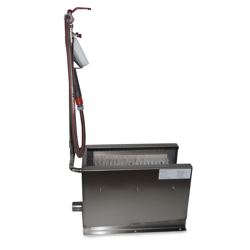 Der Stiefelreiniger Edelstahl mit Sammelwanne ist ein kleiner, schlanker, robuster Stiefelreiniger, der fast überall installiert werden kann, da sich das Schmutzwasser separat