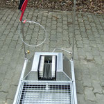 Das anfallende Schmutzwasser wird in einer grossen Auffangwanne aus Aluminium gesammelt und über ein rückseitig angebrachtes Ablaufrohr abgeleitet. Der Wasseranschluss erfolgt über eine genormte GEKA-Schnellkupplung (¾ Zoll), was eine einfache Installation ermöglicht. Der Gitterrost lässt sich bei Bedarf schnell entfernen, wodurch Reinigung und Wartung der Anlage besonders unkompliziert sind.