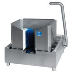 unterschiedlich grosser Düsenköpfe anpassen – je nach Bedarf des Betriebs. Das verwendete Wasser wird unterhalb der Bürsten aufgefangen und ins Abwassersystem abgeleitet.
