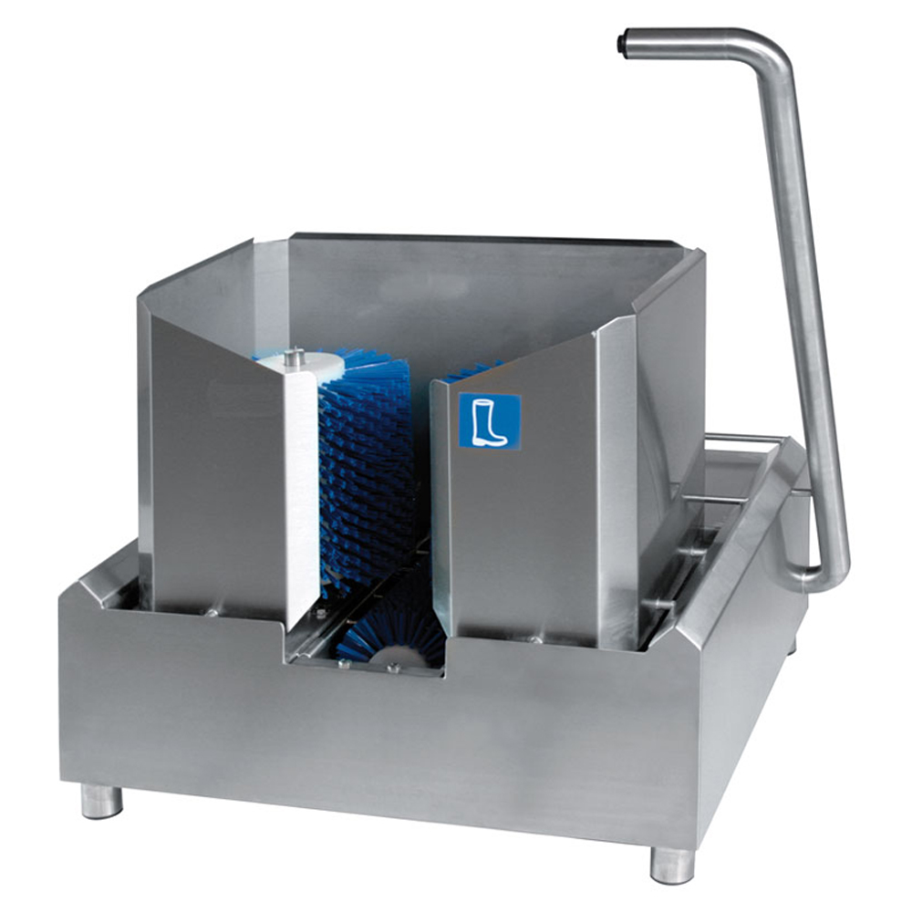 Sohlenreinigungsbürste und den beiden senkrecht stehenden Seitenbürsten reinigt diese Stiefelwaschmaschine die Stiefel Ihrer Mitarbeiter in kürzester Zeit einwandfrei.